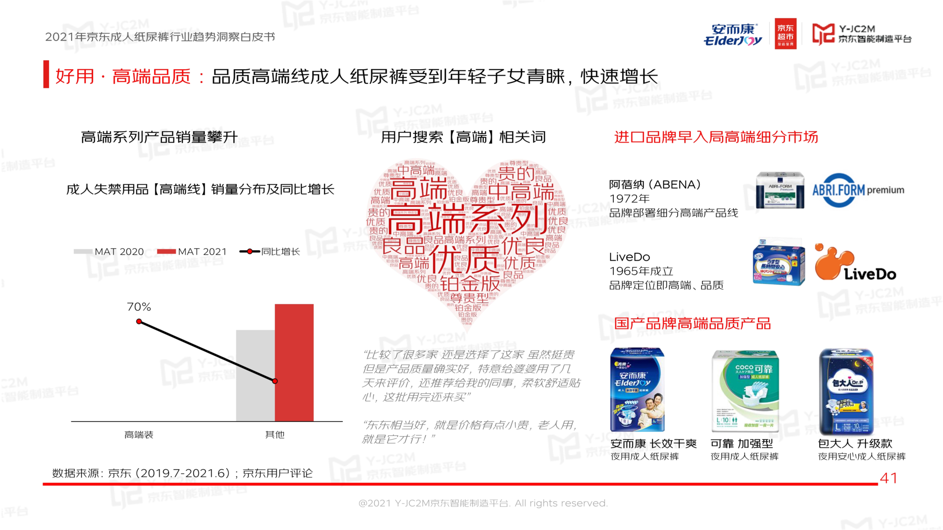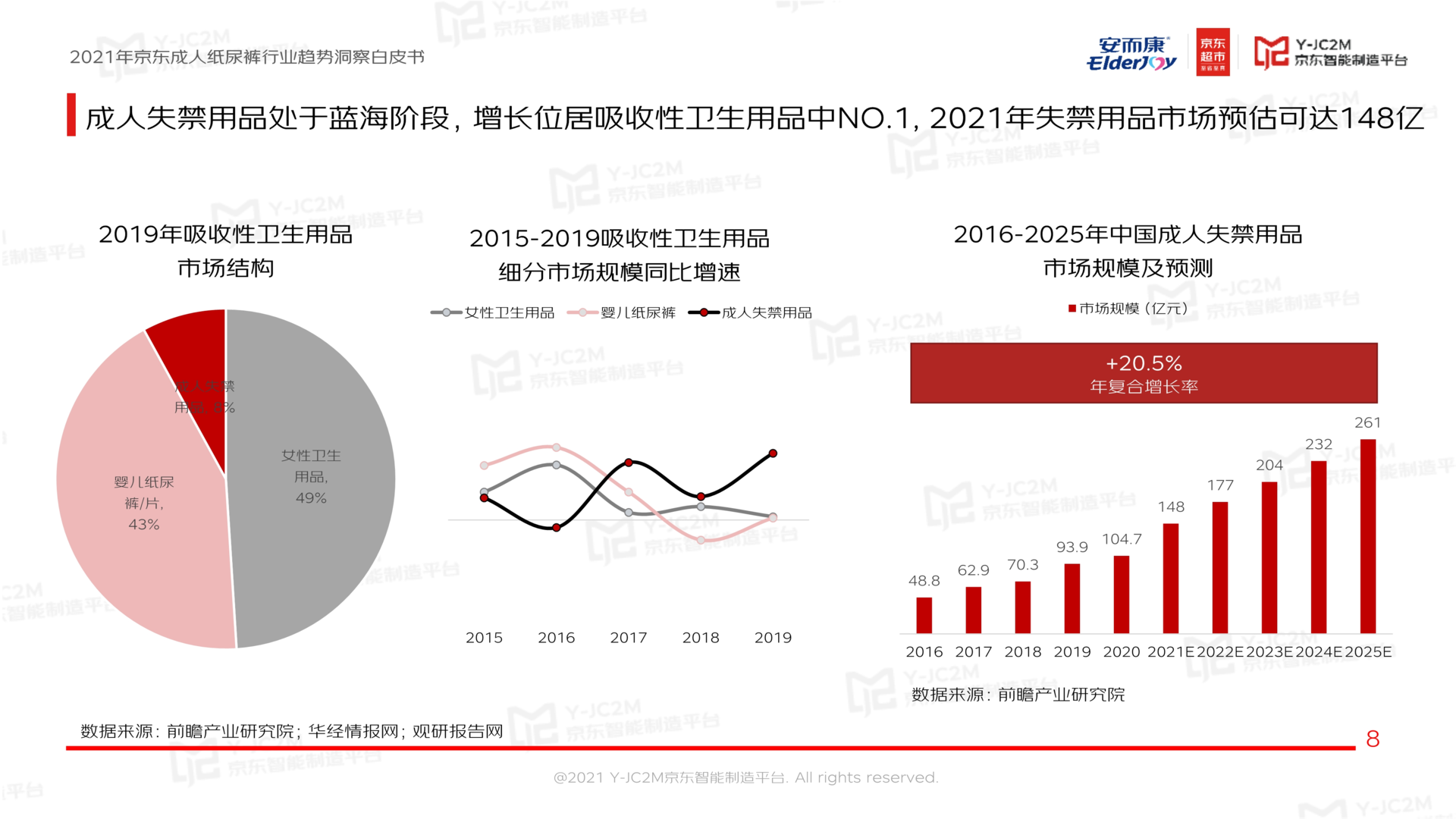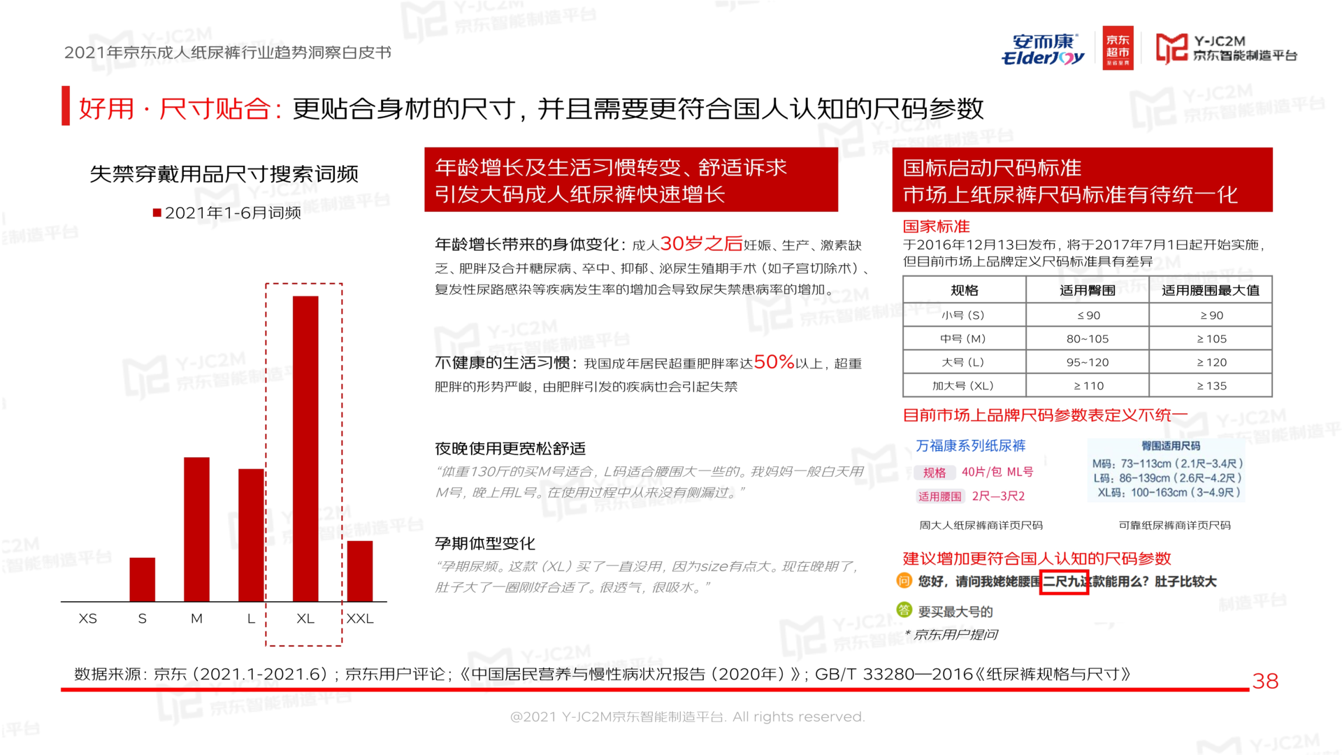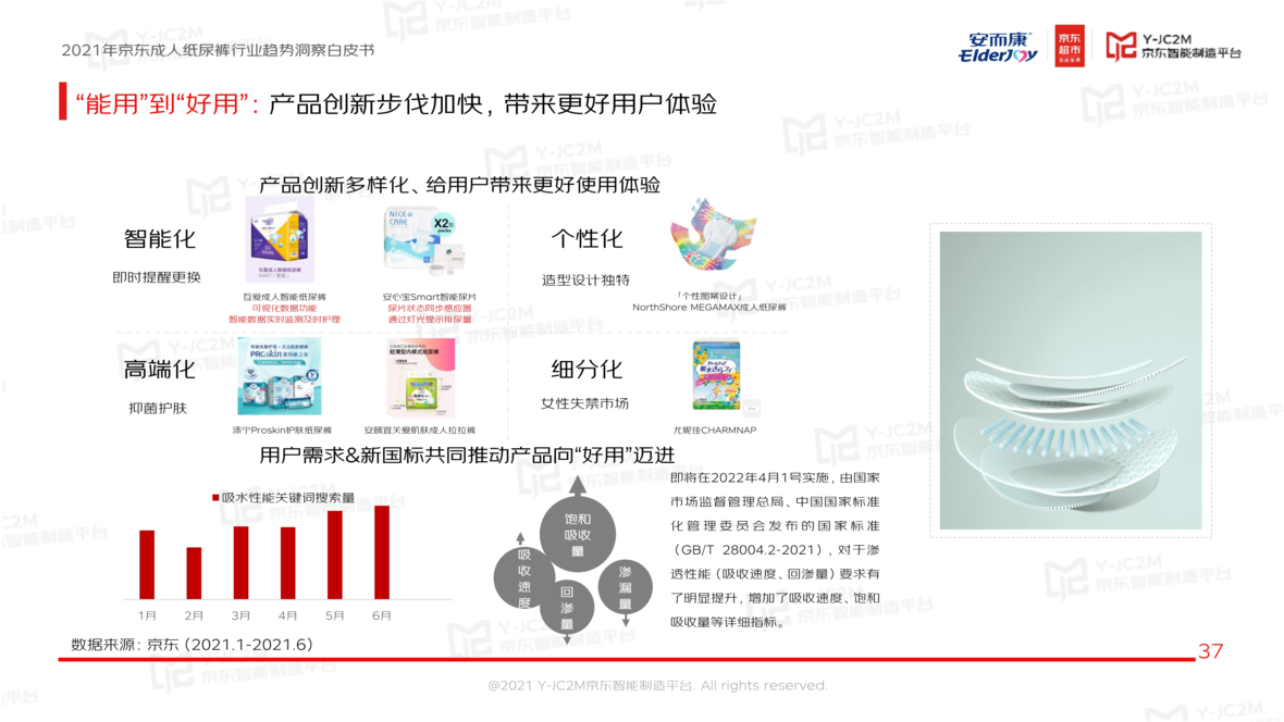 近日,BG大游集团旗下成人纸尿裤品牌安而康联合京东智能制造平台共同发布《2021年京东成人纸尿裤行业趋势洞察白皮书》(下称《白皮书》),从行业概况、品牌格局、用户洞察、趋势展望四个维度,结合销量数据与消费者,深入剖析了随着我国步入老龄化社会以及消费观念不断升级,国内纸尿裤市场的全新变化与发展趋势。
